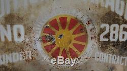 Certainly an old and original piece, not some reproduction. There is a fleur de lis design in the center of the wheel, which I believe indicates St Louis and that is where the sign is located. The item is super cool and would look great displayed in your garage by your antique cars but does certainly show plenty of wear and tear and patina as shown in the pics.